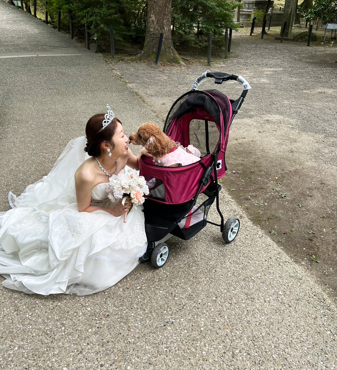 なんと、新婦様のご実家で飼ってる愛犬も前撮りに参加!