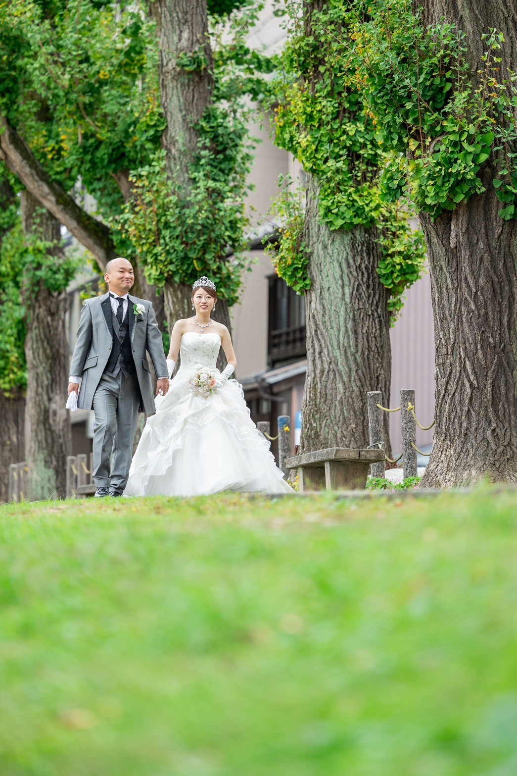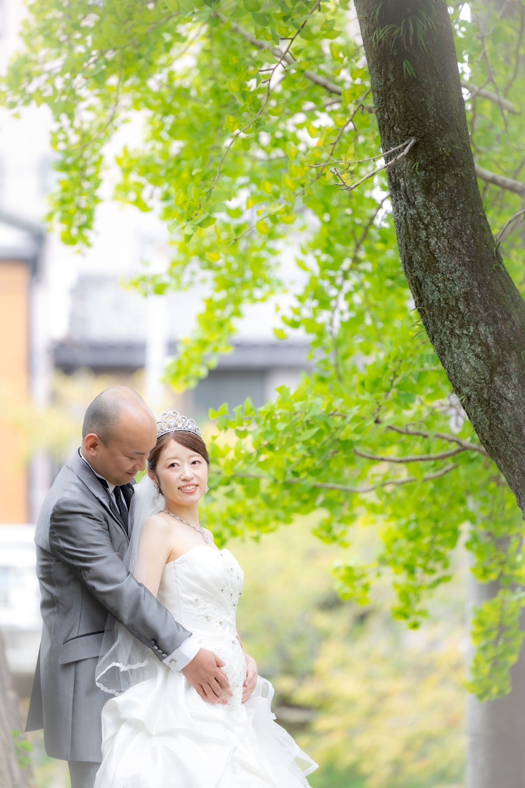 新婦様はご懐妊中で、お腹の中にいるお子さまも一緒に撮影を行いました。